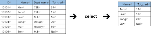 SELECT한 Attrbute만 Projection해서 만든 Relation을 반환한다.