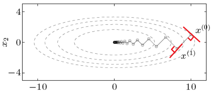 이때, Unconstrained문제이므로 이 최적점 $\mathbf{x}^{(n)}$는 결국 $\nabla f(\mathbf{x}^*) \approx 0$을 만족할 것이다.
