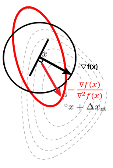 Newton Step은 현재 위치에서 2차근사를 활용해 최솟값을 찾는 방식이다.