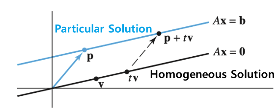 $A$의 Null Space(즉, Homogeneous해) 평면 위로