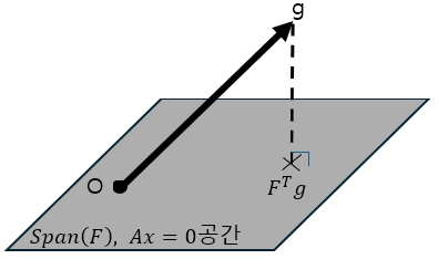 즉, $g = \nabla_\mathbf{x} f$를 $F$가 Span하는 공간 위로 Projection시킨 벡터가 해임을 알 수 있다.