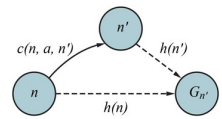 1 2 3 4 5 6 7 8 9 10 11 12 def Best_First_Search(graph, start, end, cost_func): frontier = heapq([start]).set(cost_func(node)) visited = [start] while not frontier.is_empty(): node = frontier.pop() if node.state == end: return node for child in expand(node, graph): if (child not in visited) or (cost_func(child) < cost_func(visited.find(child))): visited[visited.find(child)] = child frontier.append(child) return False이때 $f(n)$으로 휴리스틱 함수를 사용하기도 하는데 다음에 주의하자