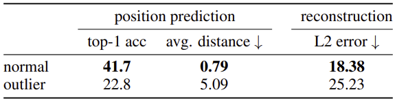 - Patch embedding은 Position embedding에 의해 위치 정보를 포함하고 있다. 이러한 점에 주목해서 원래 위치를 Prediction하도록 해 보았는데 Artifact가 존재했던 Patch는 원래 위치에 대한 예측 성능이 떨어지는 것을 볼 수 있다.