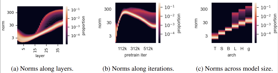 - (b) 전체 Training iteration중에서 $\frac{1}{3}$에서 Outlier가 발생하기 시작한다.